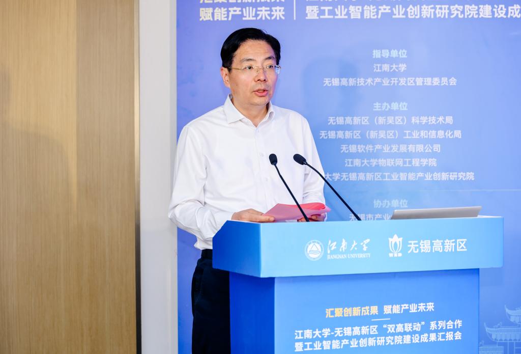 4月19日下午,江南大学-无锡高新区“双高联动”系列合作暨工业智能产业创新研究院建设成果汇报会在无锡(国家)软件园举行。
