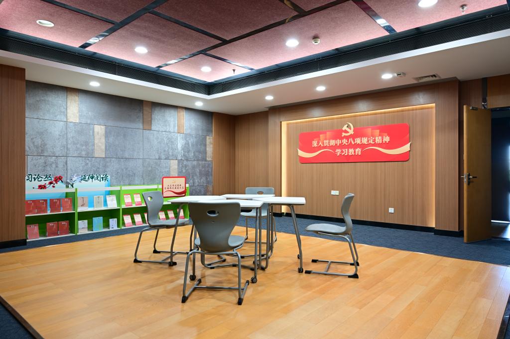 展卷沐清风,执卷守初心。学习书房位于图书馆三楼鼋元阅享空间,共分为阅读学习区、宣讲培训区、交流研讨区、书影同行区四个功能区。深入贯彻中央八项规定精神学习教育期间,学习书房面向全校师生党支部开放,可以通过电话预约的方式,提前预约学习书房开展学习教育。欢迎各党支部走进学习书房开展学习教育,共沐书香清风。