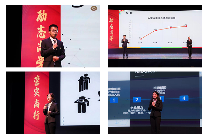随后,颁奖典礼正式开始。典礼共分为“励志尚学 追求卓越”、“崇实尚行 筑梦江南”、“明德尚善 初心永怀”、“求真尚创 锐意进取”、“笃学尚远 荣耀起航”五个篇章,苏锦杰、戈程禹、董青、谢琳贤、赖武军、连紫含、王欣冉、刁寒钰、卢柳言等9名优秀大学生代表先后就学习经验、社会实践、体育运动、学生工作、科研创新、国际交流等方面内容进行了形式多样、内容丰富的分享。谈到现场观看典礼的感受,同学们在认真观礼、热烈鼓掌之余,也纷纷发表了自己的感慨。“感动”、“激励”和“奋斗”是大家口中出现频率最高的关键词。同学们纷纷表示,榜样的力量让人备受鼓舞,在优秀典型的激励下,面对未来学习生活中的挑战,大家将化感动为奋斗的力量,早日成长为融江南精神与商院特色为一身的新时代栋梁之才。