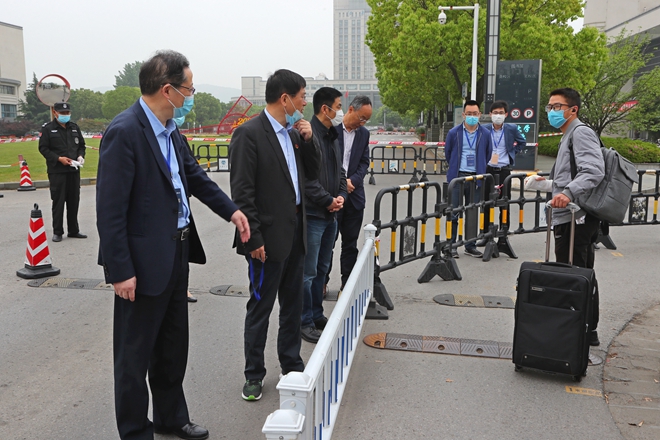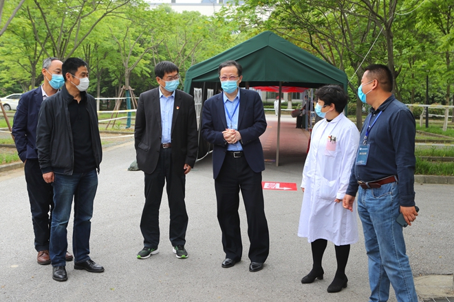 朱庆葆一行实地走访了学校东大门学生报到入口、红外测温区、返校码核验区、运指中心与指挥部等重点区域,深入了解了疫情防控期间学生的返校报到流程和防控措施,对突发事件的应急处置措施给予了充分关注。