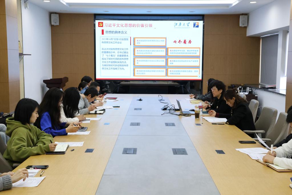 张菁燕首先以《加强党史学习教育积极推进学院文化建设》为题讲党课。她重点讲解了习近平文化思想的形成过程和丰富内涵,解读了《党史学习教育工作条例》的详细内容及其实践要求。她提到,习近平文化思想为高校文化建设提供了价值引领和根本遵循,建设什么样的学院文化、怎样建设学院文化,关乎学院办学理念和价值追求,关乎人才培养、科学研究、学科建设的质量和品味。她希望各党支部以基层党建“书记项目”为重要抓手,组织带动全体党员同志学史明理、学史增信、学史崇德、学史力行,开展“江南纺织”历史追寻、文化追踪、人物寻访和科普推广,以实际行动探寻和弘扬江南纺织精神。