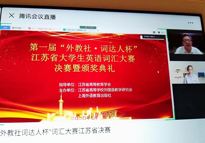 为积极响应教育部“停课不停学”的号召,充实疫情期间广大非英语专业本科生的学习生活,检验开学以来大学英语的线上学习成果,同时进一步深化大学英语教学改革,促进学生对英语词汇的深度学习,外国语学院大学英语基础部和拓展部组织我校18级和19级本科生参加了第一届“外教社•词达人杯”江苏省大学生线上英语词汇大赛。7月4日19:30-21:00,省决赛在线上全程直播。我校入围的20名学生与省内其他高校的同学们经过激烈的角逐,获得了优异的成绩。其中刘帅荣获一等奖,胡晨荣获二等奖,叶子嫣、庞添文、董沫兰、彭安祺、周娅丽、何義麟、金心怡、陈心怡荣获三等奖,另外还有7位同学获得优胜奖。