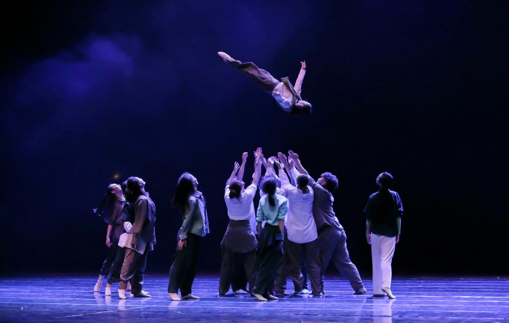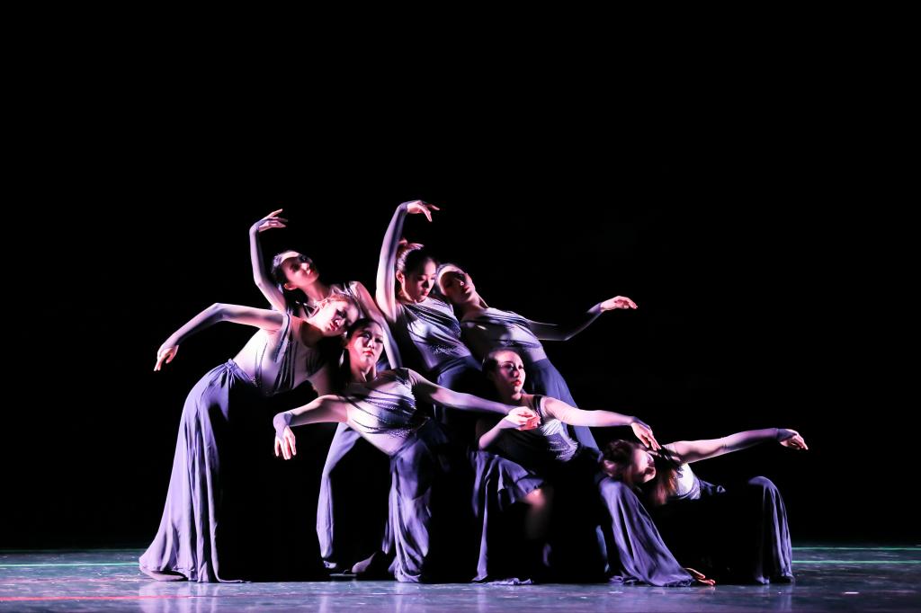 《青春摇摆》运用激情的旋律、青春的面孔,在摇摆的节奏中带起城市的节拍,象征着校园的符号;原创作品《一荤一素》以一张老照片勾联“我”与父母的诸多回忆,意在展现亲情可贵,树欲静而风不止,子欲养而亲不待,子女更应感念哺育之恩,作品用舞蹈展现人性温情;浮甘瓜于清泉,沉朱李于寒水。水是万物之源,不断汩动的泉水更是活跃了整片生灵。人们从水中攫取,攫取力量,也攫取希望。作品《泉》以朝鲜女子群舞的形式展现对于水的特殊情感,柔婉温情之外,亦存刚健之气;《我的祖国》刻画出一座座爱国将士为国捐躯的丰碑,先辈们“背着因袭的重担,肩住了黑暗的闸门”,方存我们今日之光明幸福,同学们用沉毅稳健的舞姿赞颂牺牲先烈们的凌然大义;怀念与铭记之后,《枝桠》紧跟时代浪潮,表现了疫情来临之际,中华儿女所表现出的顽强斗争精神,正如同树枝最末梢的枝桠一般,生生不息。最后,作品《远方》寄予了学子们对远方的向往,对探求梦想的渴望。