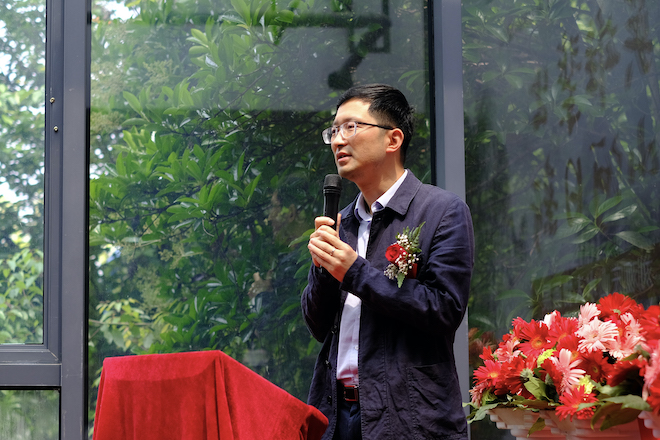 江南大学设计学院党委书记邱建平宣布开幕,嘉宾剪彩