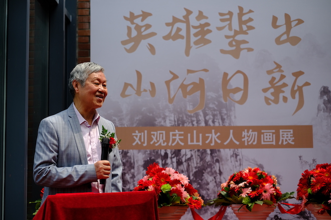 画展开幕式由何振梁与奥林匹克陈列馆馆长徐暐主持。江南大学副校长张凌浩教授致辞,他高度评价了刘观庆教授的山水人物作品以笔墨重走徐霞客之路,歌颂祖国大好河山,以激情描绘抗疫英雄,歌颂伟大时代与人民,展现了“艺术为人民服务”的创作精神。他指出,习近平总书记考察清华大学美术学院时强调要发挥美术在服务经济社会发展中的重要作用,将美术成果更好地服务于人民群众的高品质生活需求,刘观庆教授曾经在工业设计教育中作出了突出贡献,退休后又在国画创作方面笔耕不辍,这种精神将激励和鼓舞着年轻的艺术家和学者们。