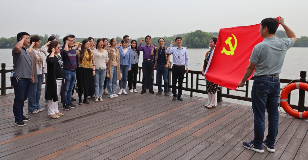 循着革命先辈的足迹,大家瞻仰南湖“红船”。1921年7月,中国共产党第一次全国代表大会因上海法租界巡捕的袭扰,被迫移至南湖一条游船上举行,这条游船因而获得了一个永载中国革命史册的名字“红船”,靠在堤岸旁的红船,向人们生动地展现了中国共产党诞生的历史场景。同志们瞻仰了红船,感受到了中国共产党诞生的波澜壮阔,深刻领悟以“开天辟地、敢为人先的首创精神;坚定理想、百折不挠的奋斗精神;立党为公,忠诚为民的奉献精神”的内涵。党员们在红船旁庄严宣誓,重温入党誓词,铭记入党初心。
