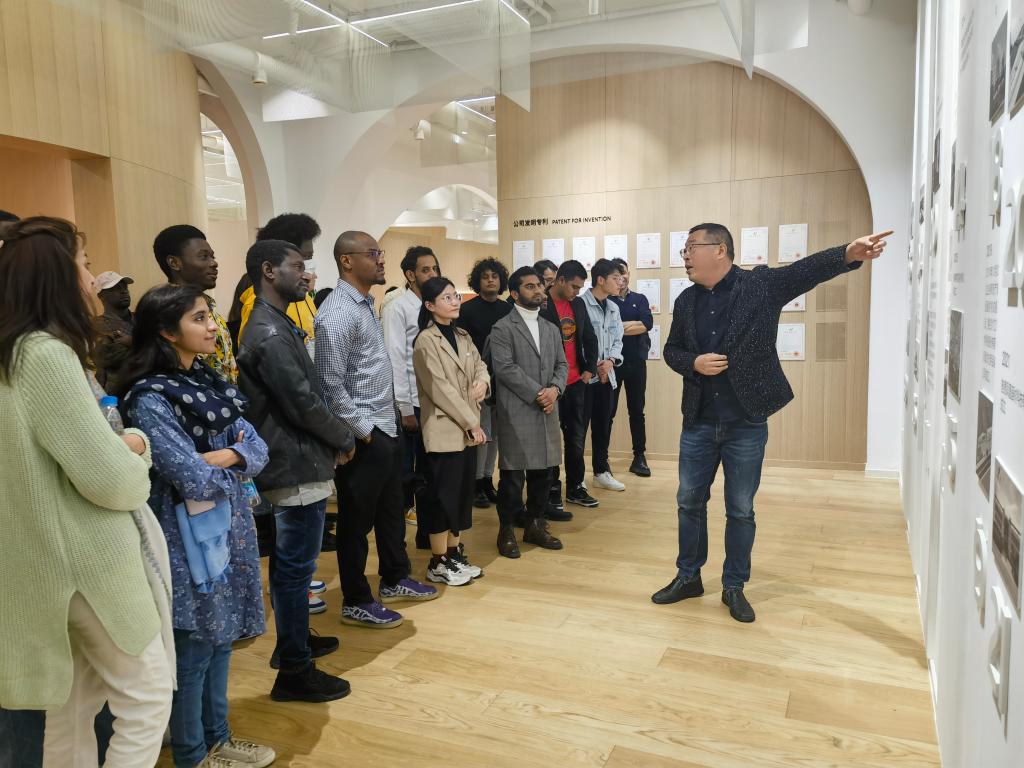 启动仪式后,国际学生参观了天奇自动化工程股份有限公司,负责人介绍了企业如何从一家集体所有制的乡镇企业一步步发展成上市公司,通过走访企业展馆、生产车间,展现了企业上下诚信、勤勉、创新、共赢的文化和价值观。在西站物流园,国际学生亲眼目睹了一个个穿满货物的集装箱即将乘上中欧班列,走出国门、走向国际市场,大家纷纷在中欧班列的运行图上找寻自己的国家,激动不已。下午又来到江苏凤凰画材科技股份有限公司,作为勇于把握先机、较早在“一带一路”沿线国家投资建厂的无锡企业,很好诠释了积极响应“一带一路”倡议,主动投身“一带一路”建设,为世界各国共建共赢,构建人类命运共同体的负责任的中国企业形象。参观中,国际学生积极主动与企业负责人交流,他们惊叹于无锡城市风景优美、文化深厚,更对无锡开放包容、锐意进取、充满活力的民营经济留下了深刻的印象。