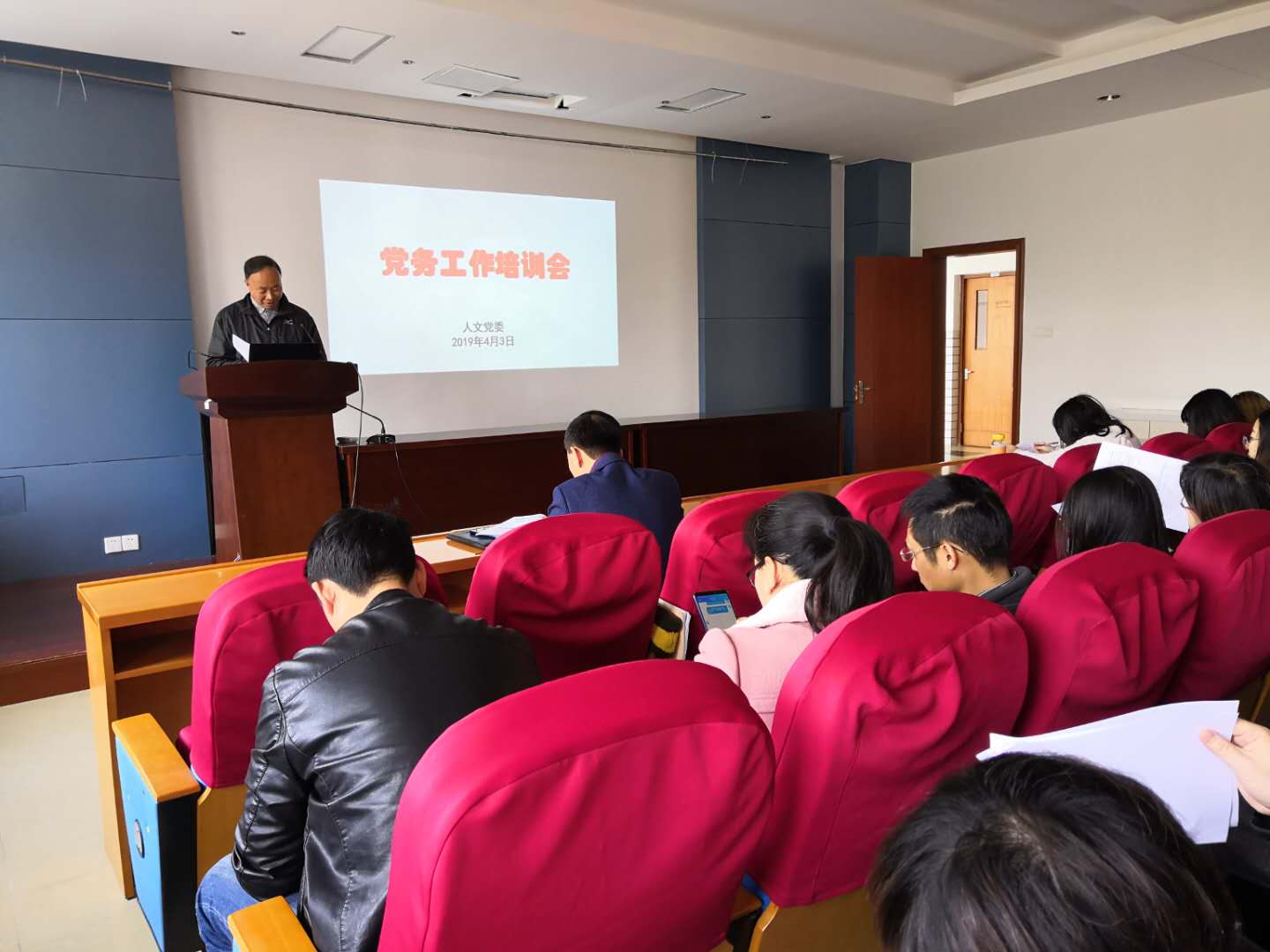 4月3日下午,人文学院在田家炳楼209会议室举行党务工作专题培训会暨第四次党代会工作动员部署会。院党委书记沈贵鹏、党委副书记兼副院长吴宝锁、党委秘书陆雪英以及学院各党支部书记委员等参加会议。