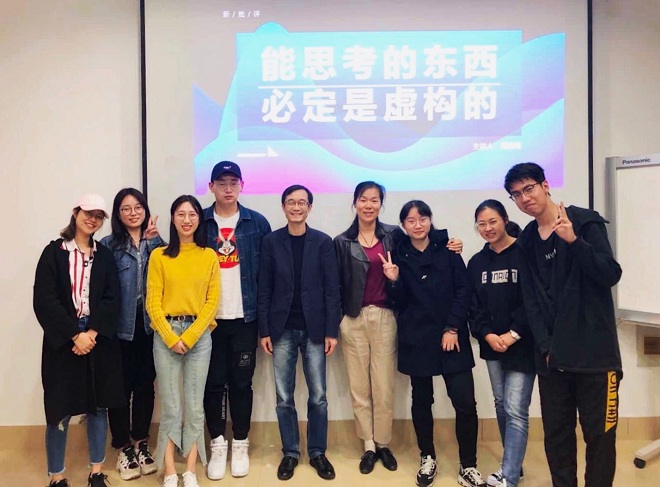 黄德海先生是一位见闻广博的综合型学者。与其他类型化的文学评论家不同,黄老师则更加渗透出多维度、无边界的学术张力。会议开场,黄老师便以日本知名动漫《海贼王》的观后感悟作为切入点,直唤青年群体对艺术“虚构”话题的思考,旋即向人文社会、自然科学等领域发散,从《左传》、《周易集解》谈到金庸武侠,从量子力学、相对论谈到赛博朋克,旁征博引,申明“能思考的东西必定虚构”的主题观点,将“虚构”与“捏造”进行严肃区分,并从西方词源的角度为学生构建出缜密的思维框架。