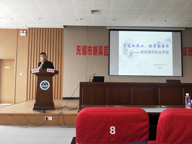 小组汇报结束后举行了简短的结业仪式。田良臣代表江南大学田家炳教育科学学院做了培训总结报告。此次新吴区新教师培训将课程设置为“入职教育”“入门教育”“入心教育”三个模块。各模块之间相辅相成,有机整合,共同支撑研修主题。邀请了高校教育领域专家、一线特级教师、学科带头人等。培训采取理论讲座与经验分享相结合、集中学习与小组活动相结合、理论讲授与项目式学习相结合、专家引领与自我管理相结合。通过研修,使新教师初步了解教师这一职业的基本要求和规范,重点掌握教师专业标准的相关要求;帮助新教师尽快入门,做好课堂教学、班级管理、教科研工作第一课的充分准备;让新教师明确教师职业的专业标准和道德规范,帮助新教师树立正确的教师观、学生观。随后新吴区教师发展中心顾万春主任代表新吴区教育局讲话,感谢江南大学校长教师培训中心各位领导和老师的辛苦付出,勉励全体学员提高认识、转变角色、尽快适应,增强学习的主动性和自觉性、增加职业能力和自信,快速站稳讲台,体验为人师表的快乐与自豪,早日成为一名合格的人民教师。随后在场的领导为培训学员颁发了培训结业证书。