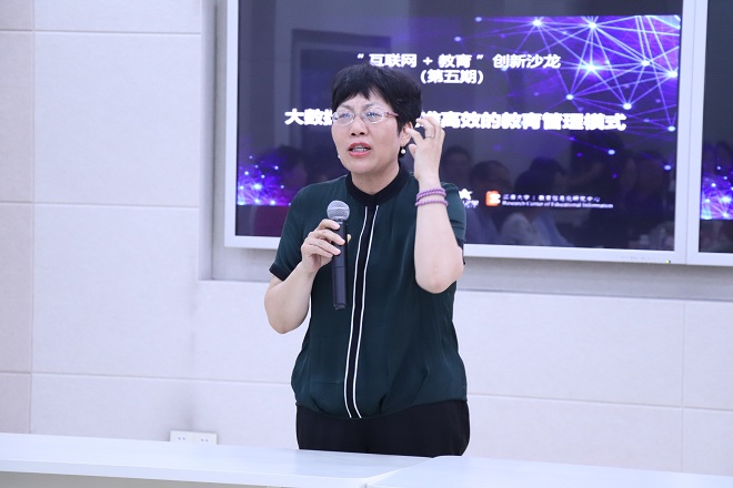 之后,陈丽教授作破题发言,指出研究者应创新探索,为适应这个时代的教育做出贡献。同时提出信息时代所有智慧可共享,知识变成动态的,知识的好坏评判准则更改。