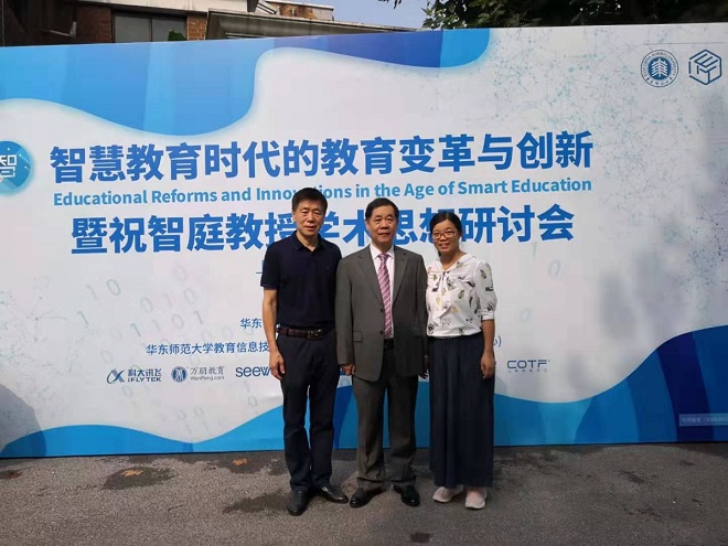 为响应教育部《教育信息化2.0行动计划》精神,推进智慧教育引领下的教育变革,2019年8月28-29日华东师范大学与中国教育技术协会联合主办了“智慧教育时代的 教育变革与创新暨祝智庭教授学术思想研讨会”。我校人文学院陈明选教授、王志军副教授应邀参会。