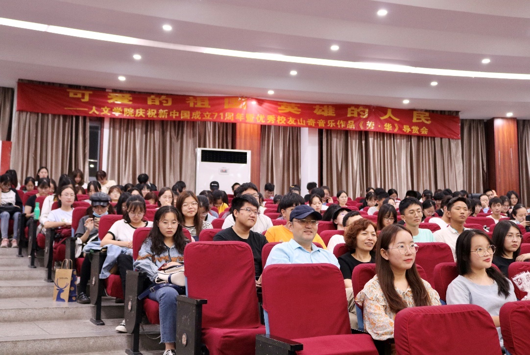 在新中国即将迎来七十一周年生日之际,人文学院师生们结合学院实际,发挥专业特长,精心组织,用师生们所熟悉和喜爱的方式带领大家走进英雄,感悟时代。今天我们在这里将最美的歌曲献给祖国和人民,未来也希冀同学们把最好的青春献给祖国,不忘初心,砥砺前行。