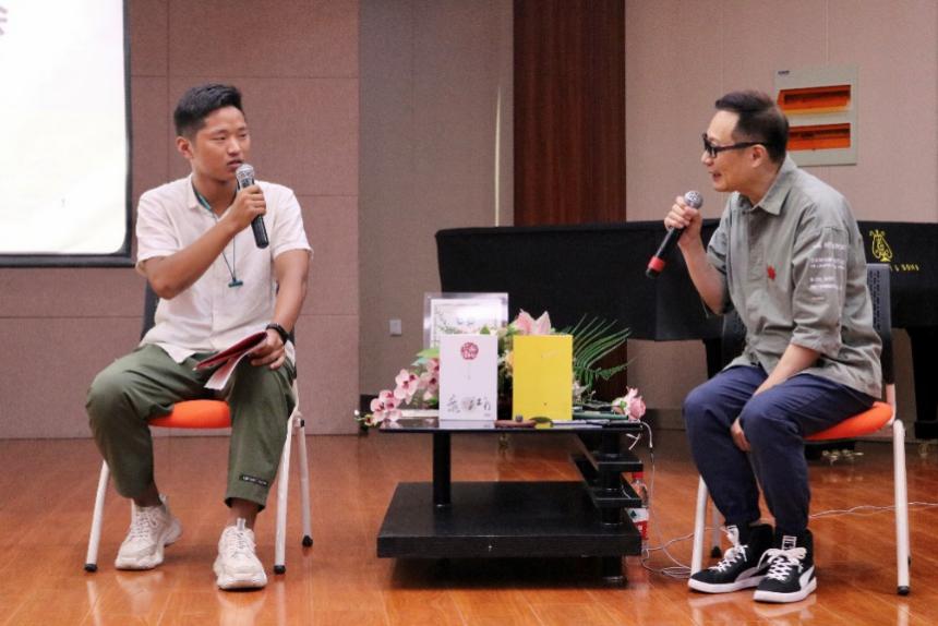 山奇在接下来的时间里邀请现场同学上台朗读《芳·华》中部分诗作,并和同学们分享了根据这些诗作创造的歌曲。《假如我在战斗中牺牲》中“假如我在战斗中牺牲,决不为短暂一生后悔”、“只要用鲜血换来边陲的安宁,我就与祖国大地熠熠生辉。”感人至深,崇高的精神令人敬佩;《思念》中战士们对已故战友的思念、缅怀深深地打动人心。