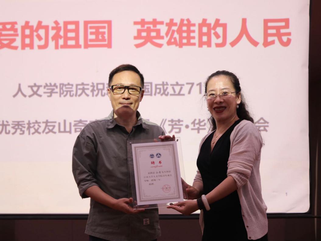 活动开始,人文学院院长助理王芳为山奇颁发人文学院“青年成长导师”聘书。