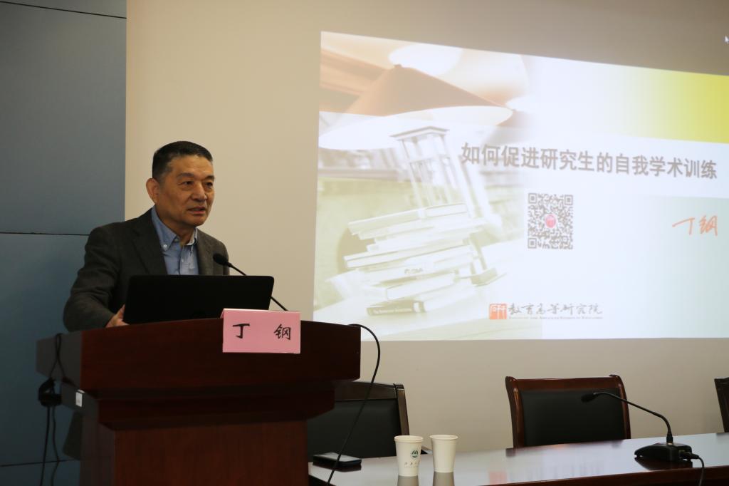 10月27日上午在田家炳楼209会议室,丁钢教授以“如何促进研究生的自我训练”为题,就研究生的自我发展及其导师指导进行了全面阐述,强调研究生阶段与本科生阶段的区别,提出“研究生不是来上学的,是来做研究的,要读书、要讨论、要钻研”;导师要提供学习书单,搭建研究生多学科的完整知识结构,激发研究生富于想象的学习;学习过程中要突出师生、生生的多元沟通、讨化、分享;研究生着重在导师的指导下加强思维方式训练,培养问题意识,形成问题结构,不断拓展问题的广度和深度;在持续学习与研究过程中,不断提升自我研究能力;在研究的知识生产过程中要强化“概念”意识,处理好问题与问题、问题与证据、问题与前见、理论与理论等之间的相互关系,形成“小齿轮咬着大齿轮”的整体研究框架结构等等。丁钢教授理论视野广阔,相关领域研究精深,展现出研究生教育教学学术与培养实践的新境界,深具参照性和启发意义。报告结束后,我院部分研究生导师及二、三年级研究生还进行了互动。