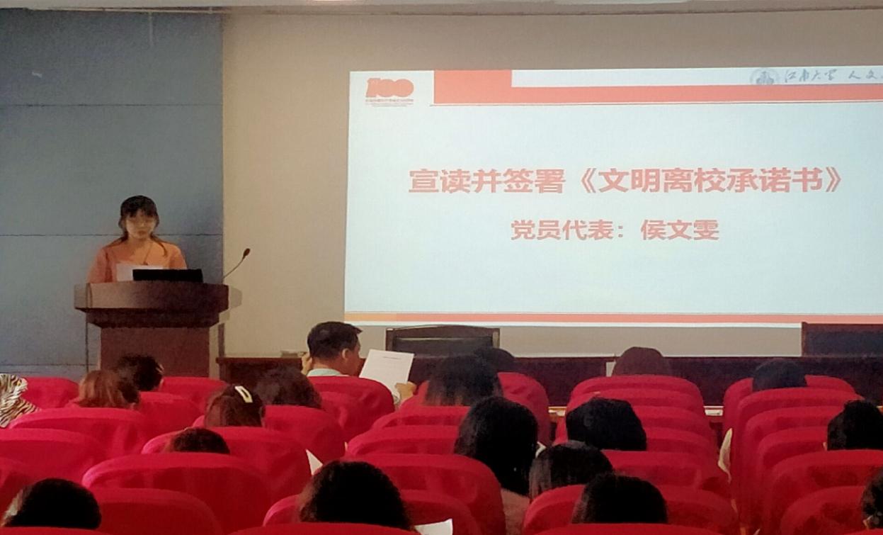 全体毕业生党员认真学习并签署《毕业生党员须知》、《文明离校承诺书》