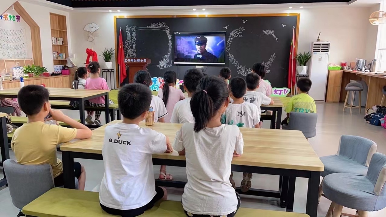 图为学生们参观宜兴党史陈列馆,以高年级学生带领低年级学生,并由学生自主讲解