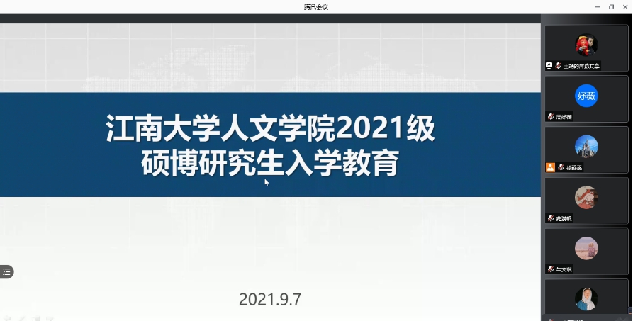 9月7日下午,人文学院在线上召开2021级研究生新生入学教育大会,副院长(主持工作)
