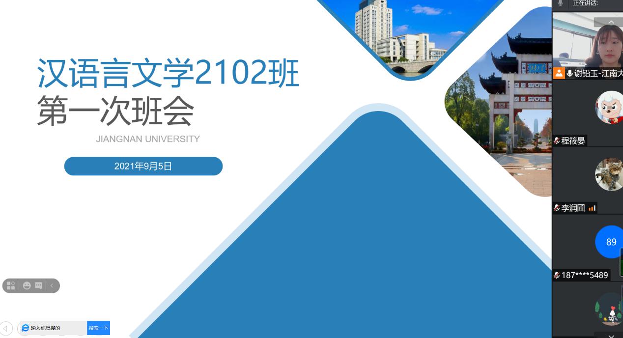 9月3日—9月5日,各新生班主任及副班主任面向各班新生组织召开第一次线上班会。班会上,各班主任向同学们介绍江南大学和人文学院的基本情况,对同学们加入学院大家庭表示欢迎;领学了学生手册等规章制度,引导同学们树立全方位的纪律安全意识;布置了线上教学的学习任务,督促同学们养成良好的学习习惯;选举了各班级临时负责人,为形成良好的班风打好基础。