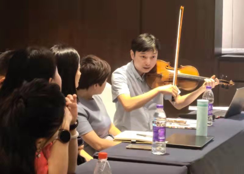 江博以“奇妙的古典音乐”为主题,从西方古典音乐的起源到中西方音乐文化碰撞思考,演奏与讲解相结合,让在场老师深入感受了音乐的和谐之美。
