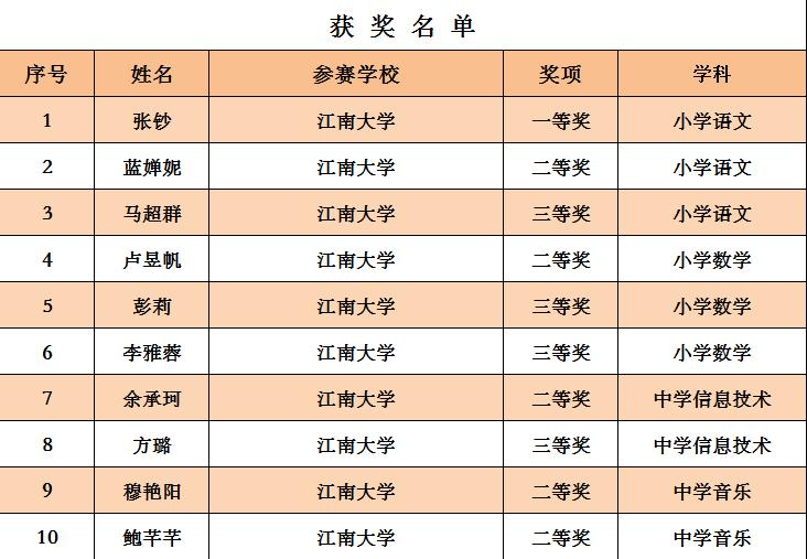 近日,第十届江苏省师范生教学基本功大赛成绩揭晓,经过激烈的比拼,人文学子在参加的小学语文、小学数学、中学信息技术、中学音乐四个学科组别的比赛中,荣获一等奖1项,二等奖5项,三等奖4项。