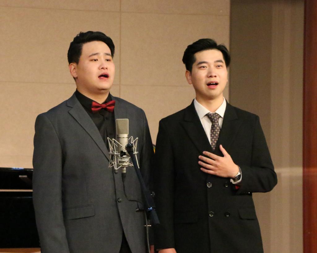 音乐会伊始,一首轻快的钢琴曲瞬间点燃全场氛围。紧接着,谈博文深情演唱《饮酒歌》,优美的旋律表达了对于爱情诚挚的追求;《你是我心中的一切》把思念化作祝福,舒缓的曲调夹杂着着淡淡的忧伤。相向合鸣,琴瑟和谐,董北辰用歌声唱出了《关雎》中先秦男女相恋的美好爱情;一首《被禁止的音乐》,细腻流畅的曲调表达了对于爱情热烈的追求。谈博文倾情演唱《青玉案》,让人仿佛身临花灯耀眼、乐声盈耳的元夕,灯火阑珊,回味无穷;董北辰用磁性的嗓音、婉转的美声让人感受到如大海般深沉的《海恋》,一首《再见了,爱恋的家》于宁静中演绎出对家的思念。