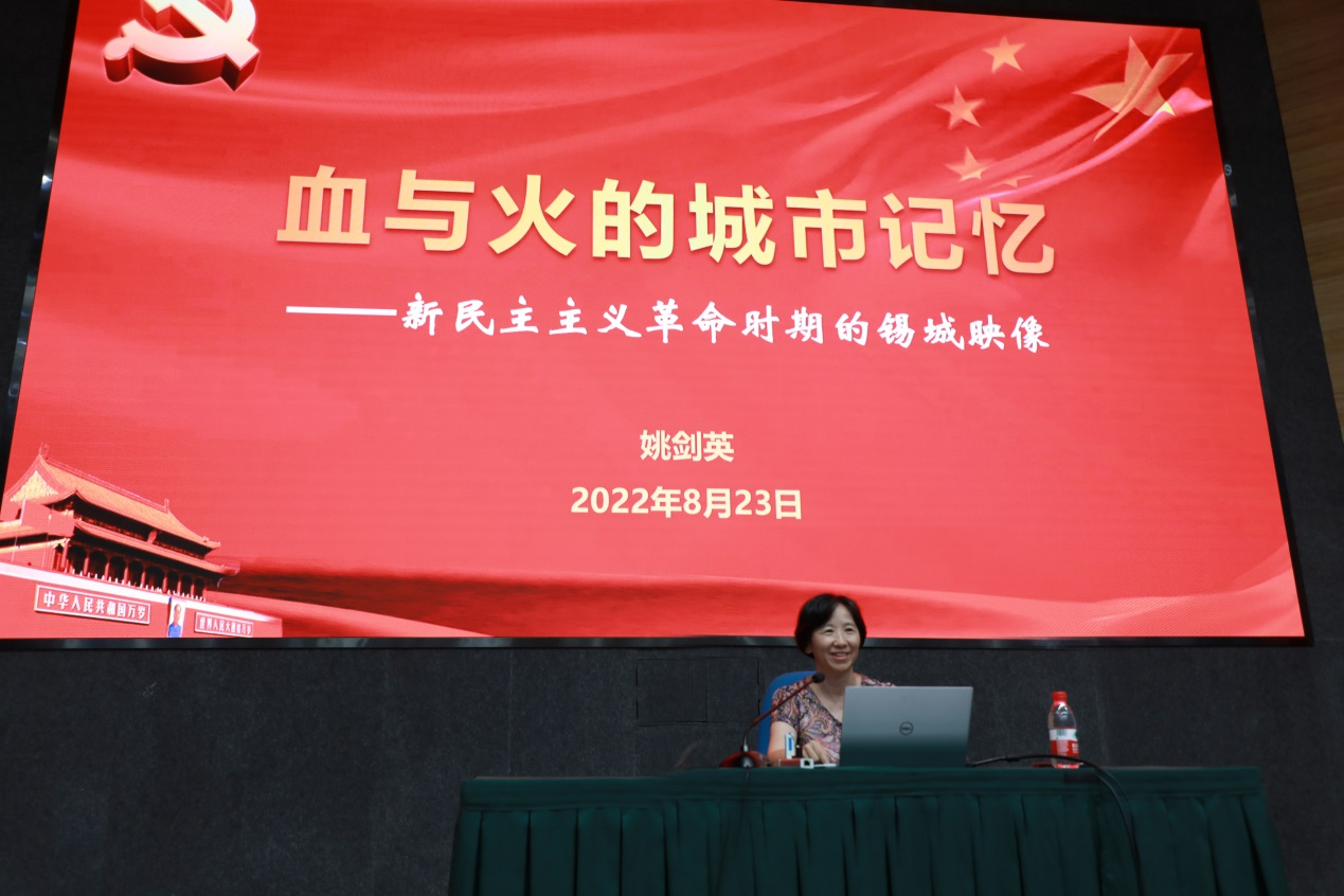 最后,人文学院与中国电信无锡分公司举行党委中心组联合(扩大)学习会议。姚剑英作《血与火的城市记忆—无锡革命简史》专题党课。她通过呈现锡城在五四运动、中国共产党成立、五卅运动、全国农民运动等中国共产党重要历史节点的历史活动,使在场的党群干部更加了解脚下所生活的土地曾经历过的磨难,从而坚定信念、砥砺品格、凝聚力量,为无锡的城市发展建设做出贡献。中国电信无锡分公司党委中心组成员、各支部委员、青年中层管理人员、团委委员、团支部书记、县分公司党委中心组成员等以线上线下联合的方式参加了学习会。