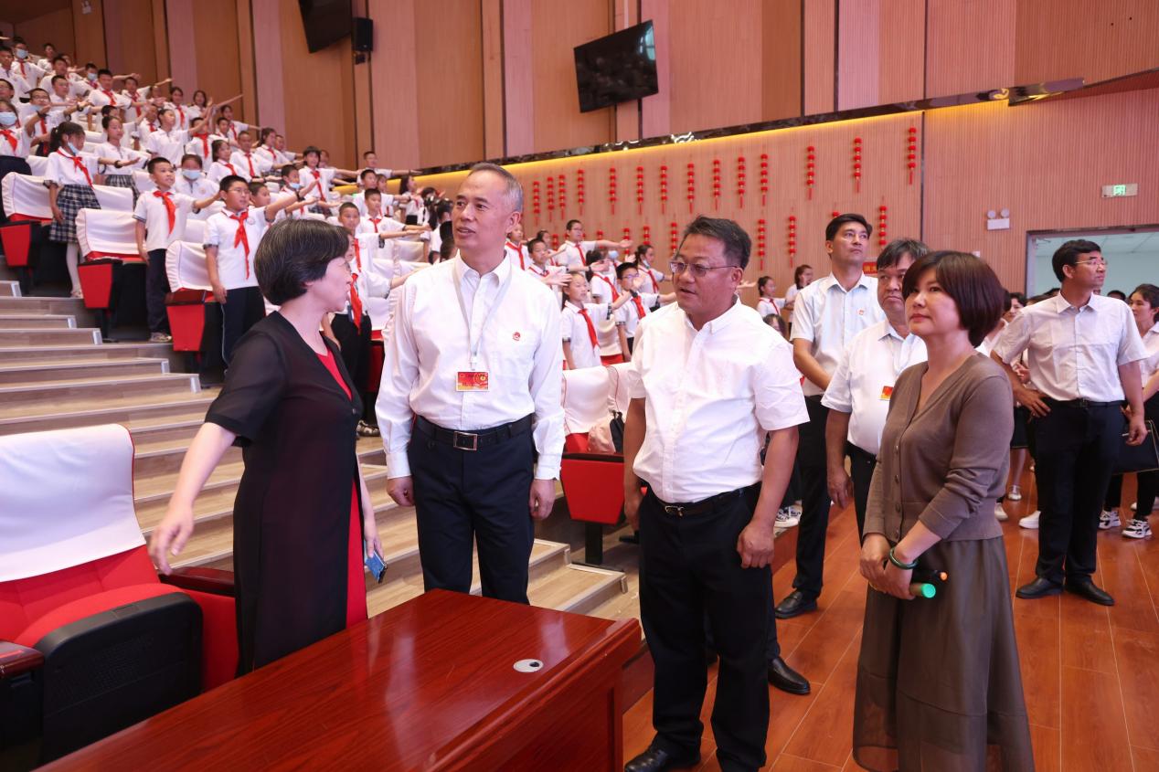7月10日上午,江南大学人文学院“童声同语”推普实践团开营仪式在新疆维吾尔自治区阿克苏地区温宿县第七中学举行。温宿县委副书记、金华援温指挥部党委书记、指挥长沃建滨,江南大学人文学院党委书记姚剑英,温宿县委教育工委专职副书记、教科局党组书记、副局长李明秀等出席仪式。阿克苏地委书记吴红展一行到现场看望实践团师生,对此次实践活动的开展给予充分肯定。“童声同语”实践团全体成员与温宿县第七中学、温宿县第八中学、温宿县第二小学学生代表300余人参加了开营仪式。