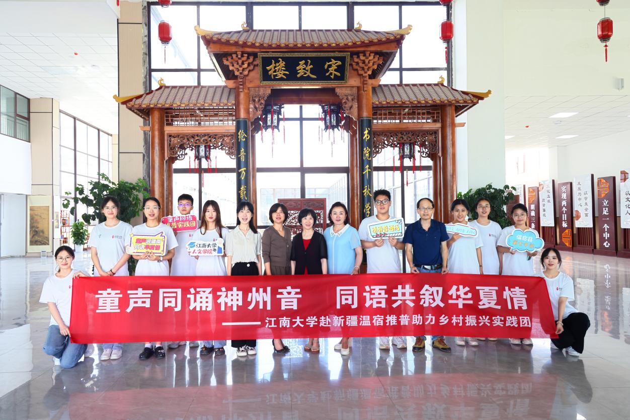 随后,江南大学人文学院“童声同语”推普实践团成员进行了项目介绍与课程发布。实践项目以“童声润疆南,同语华夏情”为主题,开展“同说中国话”“同写中国字”“同读中国诗”“同续中国情”系列课程,坚持寓教于乐,做对教学“运算符”,举好推普“指挥棒”。