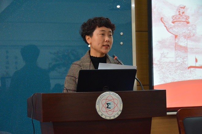 院党委书记王珏致辞。她首先对支持学院党建、团建工作的各位支部书记们表示诚挚感谢,对参会的各位团支书和学生代表们表示热烈欢迎。指出,过去的一年里学院开展了形式多样的共建活动,继续维持了所有本科生团支部与党支部共建全覆盖的良好局面;突出强调了雷锋特称团支部、华罗庚特称团支部一直是学院团支部的表率,在各项团工作中起到了带头表率作用。她代表学院党委向大家提出三点希望:一是希望继续深入学习贯彻落实习近平新时代中国特色社会主义思想,坚定信念,发扬传统,做党的后备军;二是希望继续严格推进团支部基层组织建设,凝聚力量,增添活力,适应时代变化;三是继续积极开展多样化、意义深刻的主题团日活动,提升活动质量,提升支部影响力。