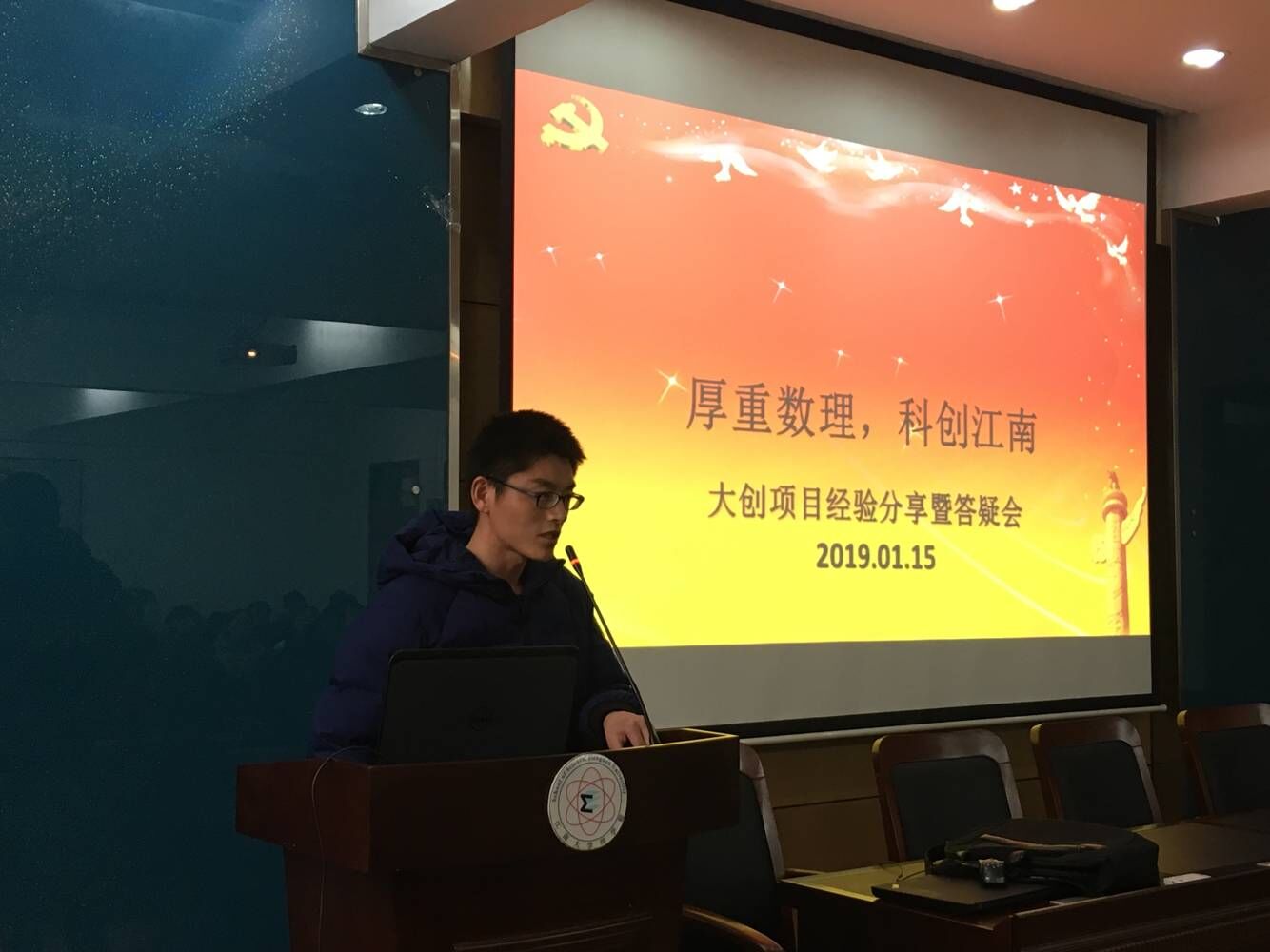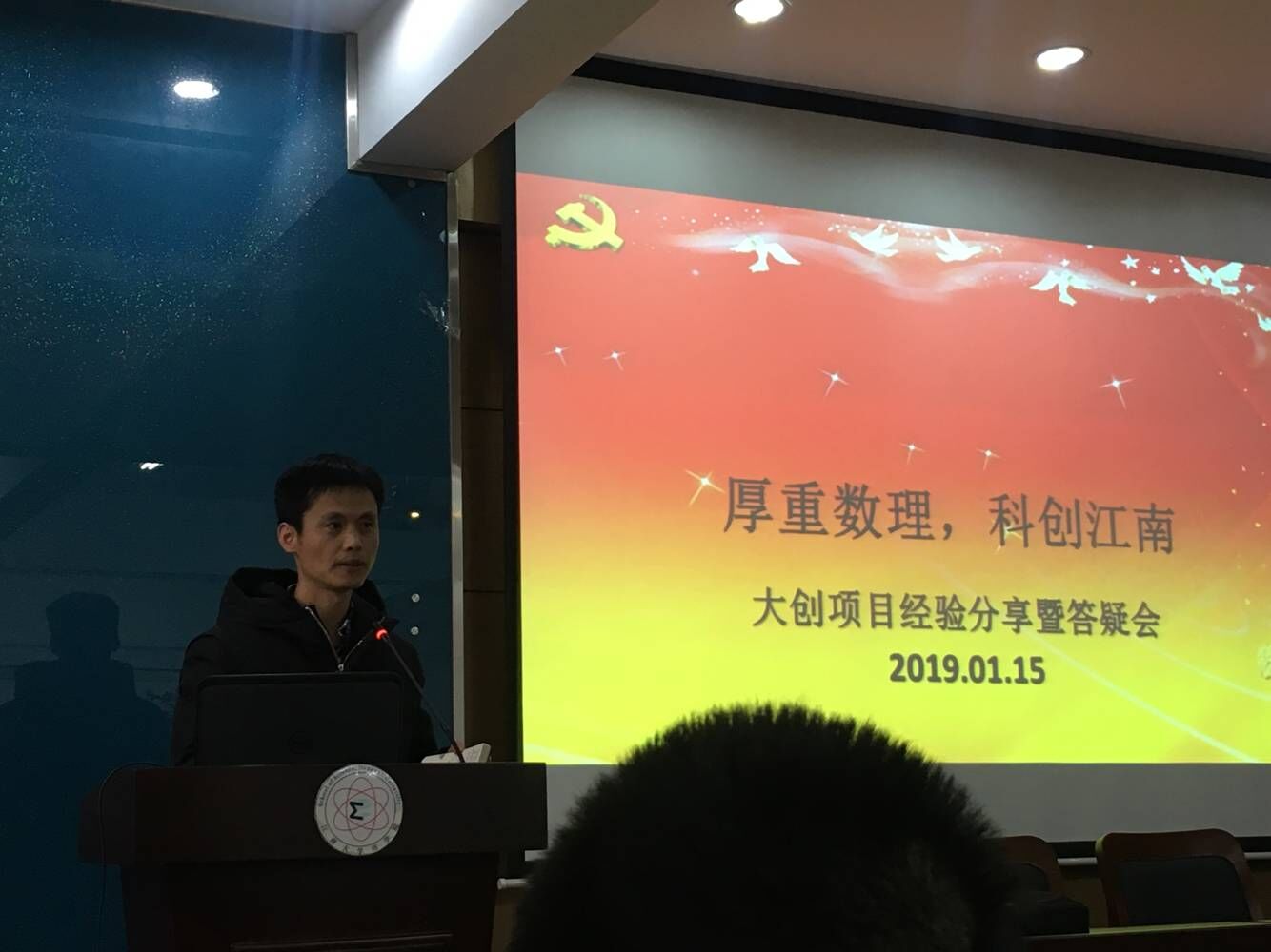 交流会分五个环节,首先,支部书记胡征达给同学们介绍了2019年江南大学大学生创新训练计划项目申报计划的总体情况,并重点就如何填写项目申请书作了逐条介绍和模板示范。第二个环节,光电系主任桑教授介绍了往届大创项目的情况、学长学姐取得的辉煌成绩以及光电系指导教师团队和专业方向的概况。第三个环节,大创指导教师代表曹建军老师从教师角度为在座的同学提供了建议。他指出,做科研创新一定要选自己感兴趣的课题,才能全身心投入其中,在这个过程中难免遇到难以预料的困难,要坚持不懈,培养自己独立动手的能力,并敦促同学们早点联系好指导教师。第四个环节为学长学姐的经验分享。光电专业王千实、杨帅、邓启林和苏增平四位学长从学生角度分别介绍了自身和团队从事大创训练过程中的心得和体会。王同学介绍了自己的实验设计思路、过程及遇到的困难,强调了整个过程对动手能力、获取课外知识能力、耐心和抗打击能力的锻炼,并建议大家要享受过程。杨同学介绍了组队、寻找指导教师、调研、论文攥写的心得,并建议要抱着积极的态度参与大创训练。邓同学具体介绍了指导教师的方向和个人特色,给了搜寻资料、文献阅读、软件学习等科研必备方法的建议,并强调了大创项目对治学态度和科学素养培养的重要性。苏同学从文献输入、提出想法、论文输出、投稿修改四个方面展开详细介绍了自己参与大创的整个过程。第五个环节,陈书记作了重要讲话,他建议同学要对参与大创保持积极性,并提出了三点希望。他希望同学们能保持奋斗精神,为自己定高一点的目标而不是单纯为了达到毕业要求。他还希望同学们能保持主动性,抓住这次培养创新意识和能力、发掘自我潜能的难得机遇,希望同学们能坚持初心,对队友和导师保持责任心。最后,他希望大创训练作为创新能力和学科竞赛的起点,能和专业学习、创新体系以及毕业设计有机结合起来。