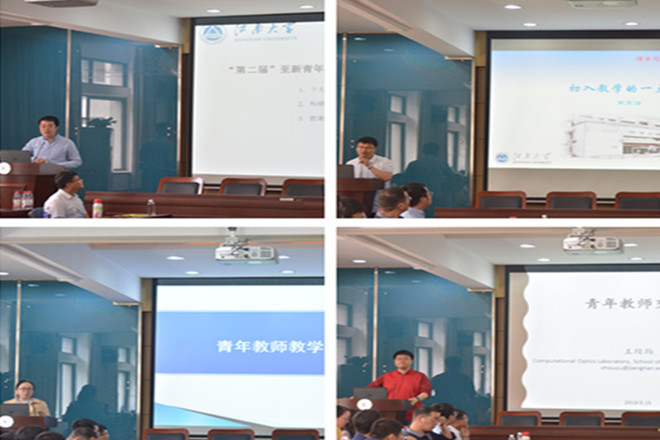 针对青年教师的教学,在新教师入职经验交流环节,信息与计算科学系胡清元、朱承澄老师和光电信息科学与工程系俞琳老师分别就跟随指导老师上课以及参加青年教师讲课竞赛体会方面进行了介绍。至善教学名师何跃娟老师针对刚入职的青年教师在教学过程中可能出现的问题,结合自己多年的教学经验和心得体会给出了青年教师很好的建议。