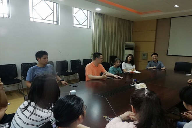 5月17日下午,理学院第八期“教授有约”活动在钱伟长楼201会议举办。本次活动邀请了理学院副院长胡满峰教授、光电系主任桑田教授进行交流。