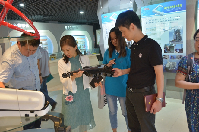 首先,接待人员带领团队进入一楼展厅,详细介绍了中复神鹰公司的碳纤维自行车,引得阵阵惊叹。碳纤维是一种高性能纤维增强材料,具有高强度,高模量,耐高温及磨损,导电,导热等诸多优异性能,而中复神鹰作为这方面的领军企业,更是始终将科技创新视为企业发展的第一动力。据专业人员介绍,碳纤维目前主要应用在建筑、体育器材以及高新技术等方面。