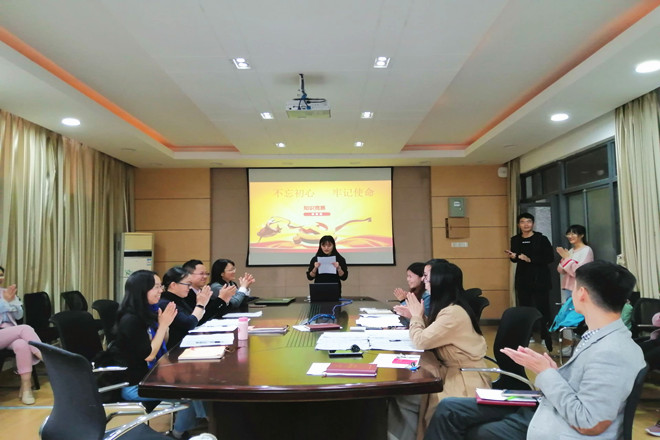 11月6日下午,理学院行政与应数党支部在钱伟长楼201教室举行“不忘初心、牢记使命”主题教育知识竞赛。院党委副书记副院长陈周,副院长高洁出席本次活动。参赛队员分别为:应数党支部张景祥、李莉、霍新霞;行政党支部曹磊、李丹、彭青。活动由学生联合党支部马冬梅主持。