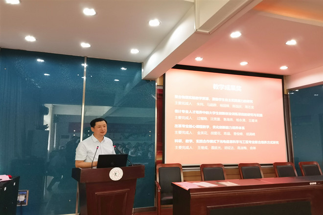 陈国庆宣读教学成果、讲课竞赛获奖名单。朱纯、曹国洋老师作为获奖教师代表先后发言。