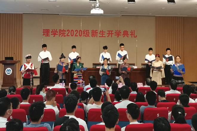 本科老生代表信计1702刘朝虎,预科文2001新生代表蒙古族娜木勒金,研究生新生代表数学20级硕士牛鑫丽等同学相继发言。他们对祖国表达了深深敬意,同时为能够聚首理学院感到十分荣幸,表示会牢记老师的教诲,努力学习,力争上游,不负青春韶华,用自己的努力与汗水报效祖国。