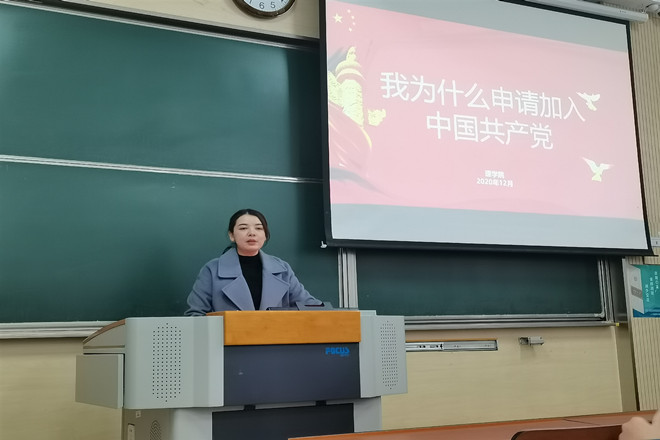 活动伊始,苏丹介绍了举办本次活动的初心及意义。王琦琦介绍了发展党员的程序步骤,让同学们对党员的发展流程有了更加深入的了解,同时讲述了宋庆龄、朱德、华罗庚的入党故事,优秀党员先辈们的入党历程让同学们心潮澎湃,为革命先辈们的坚定信念而感动。