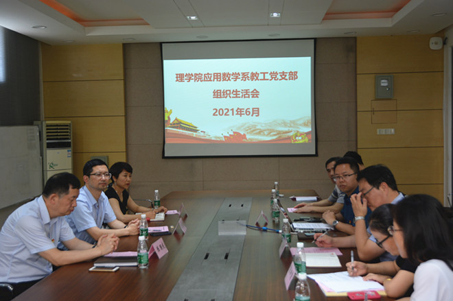 6月23日下午,理学院应用数学系教工党支部于201会议室召开“学习百年党史 铸就千秋伟业”组织生活会,江南大学副校长张凌浩,理学院党委书记王珏,院长陈国庆出席,应数系教工党支部全体党员参加会议。会议由应数系教工党支部书记张景祥主持。