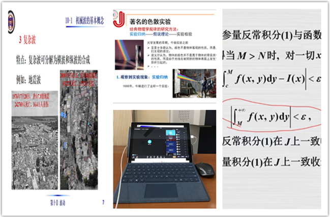 团队协作上好课程第一课。为了切实保障线上教学秩序和效果,开学前夕,在学院统筹协调下,各系部教师充分发挥课程团队力量,在课程形式安排、课程内容落实、教学条件保障、教师教学准备等方面作了详尽安排,积极把“课程思政”融入新学期第一课。例如,江苏省高校课程思政示范课程“大学物理”课程团队在备课中,既从专业知识的角度分析“地震波”的概念,以动画的形式系统分析地震波的成因和其中横波和纵波的传播及其影响,同时,拓展讲述如何在地震发生时保护生命安全,并通过分析唐山、汶川地震实例,讲述中国人民在面对疫情、洪涝、地震等自然灾害时所表现出的“大无畏精神”,一方有难、八方支援,让世界见识了中国力量,加强对学生的爱国主义教育。开学第一周,学院6个教学系部,高等数学、大学物理等8个教学团队,共118名教师为全校239教学班、17000余人次上好新学期第一课,教师教学内容准备充分,学生全勤到课,课堂教学有序,师生互动积极,气氛活跃。