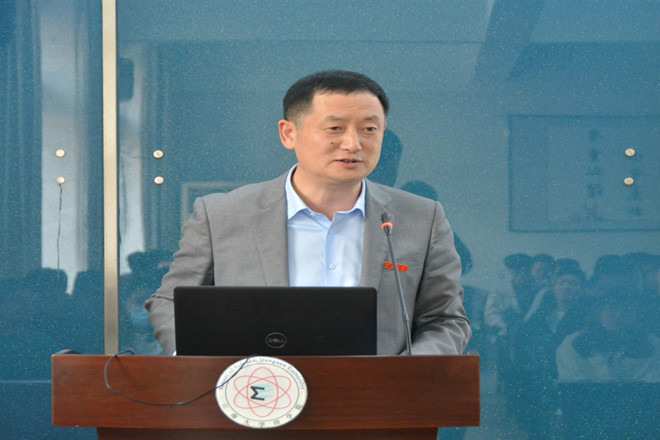 陈周和胡满峰分别对新生寄语,希望同学们刻苦学习、发奋图强、不断创新,笃学尚行怀壮志,厚重数理携梦行;告诫同学们在今后的科研道路上踏实认真、脚踏实地。