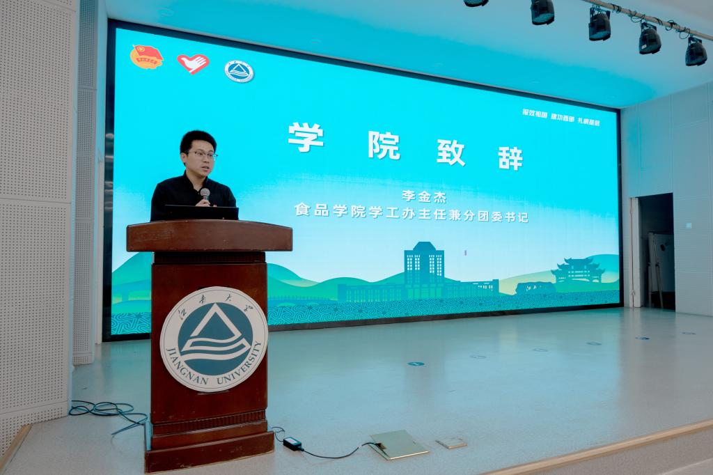 李金杰致辞。他回顾了江南大学自1996年响应国家援疆号召,选派顾正彪教授等赴疆开启援助西部建设发展的赓续篇章。二十九载接力传承中,学院先后组建南国北疆实践团、博士科技服务团、食品安全进社区、青芽食育儿童科普等项目,以食品专业力量持续书写科技援疆、赋能基层的时代答卷。他衷心号召和期待更多的江南学子怀揣“教育强国”“食品强国”的伟大理想,饱含“敢为人先”“砥砺奋进”的气质精神,挺膺青年担当,扎根基层沃土,在祖国最需要的地方,奉献江南人的赤诚热血和无悔青春。