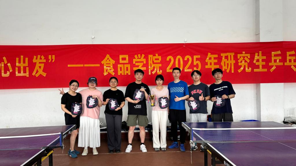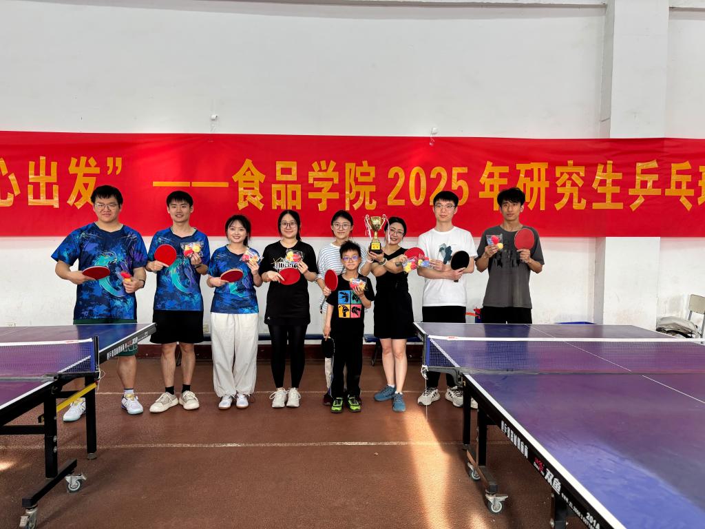 比赛进入白热化阶段,每位选手都拼尽全力,单打选手如猎鹰般精准把控落点,锐不可当;双打搭档似精密齿轮般无缝衔接,尽显风采。赛场上,叫好声、鼓励声此起彼伏,不绝于耳。那些拥有丰富赛场经验的教师与青春洋溢的学生搭档,早已将赛场上每一个人的热情点燃,共同书写着这场乒乓球赛的辉煌篇章。经过五轮鏖战,最终,由唐晓姝老师带领的食品3队夺得桂冠。