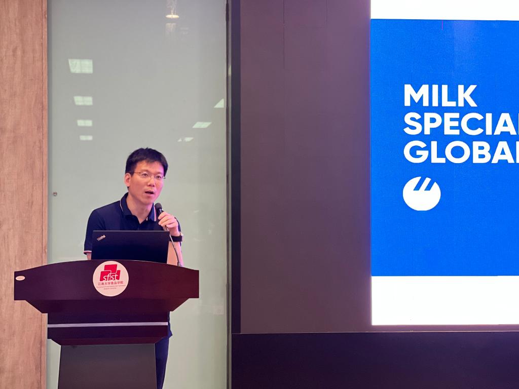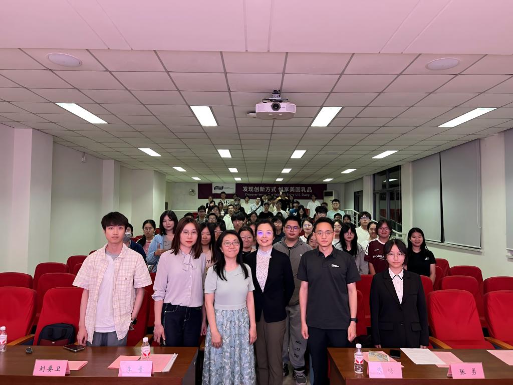 近日,第七届“乳此美味杯”食品创意大赛宣讲会在江南大学举办。美国乳品出口协会代表苏畅,美国Actus Nutrition公司业务发展经理张勇,食品学院党委副书记兼副院长李雷,乳品创新中心刘小鸣、刘要卫、刘若男以及100余名学子出席宣讲会。
