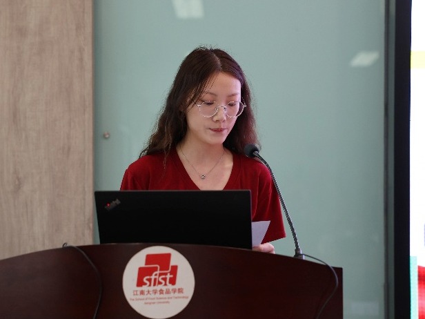 在食品学院D912报告厅主会场与D917分会场,300余名毕业生党员、新发展党员在学工办主任兼分团委书记李金杰的带领下庄严宣誓。铿锵誓言回荡会场,党员们眼神中闪烁着信仰的光芒。本科生第一党支部曾美怡作为新党员代表发言时表示,这是对政治生命的郑重宣告,更是对“为人民服务”宗旨的永恒承诺。熟悉的字句唤醒入党初心。“当右手握拳过肩时,实验室里‘求真务实’的精神与党旗下的誓言交叠,我更加明确了作为江南食品人的使命担当。”食硕2203党支部孟逸云作为毕业生党员代表发言如是说。