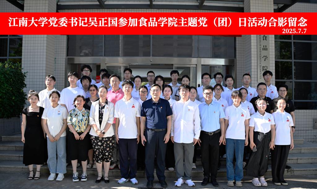 7月7日下午,食品学院举办“青春心向党‘智’创新‘食’代”主题党团日活动。校党委书记吴正国、学院本科生第一党支部、食品AI卓越创新班2401“荣毅仁”特称团支部全体成员参加活动。党委办公室、党委组织部、团委以及食品学院相关负责同志列席参加,活动由学院学工办主任兼分团委书记李金杰主持。