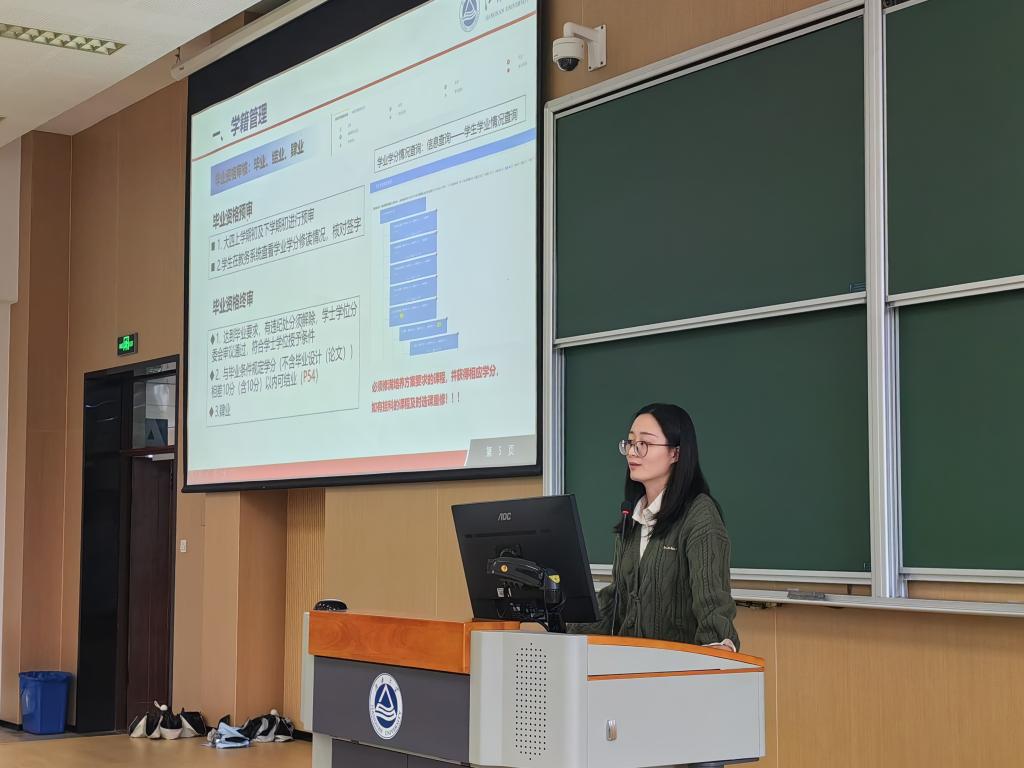 11月7日下午,食品学院组织开展“本科生学业指导与培养制度解读”新生转型教育活动,特邀食品学院教学办公室梅俊俊老师主讲,面向24、25级全体学生,现场学习氛围浓厚。