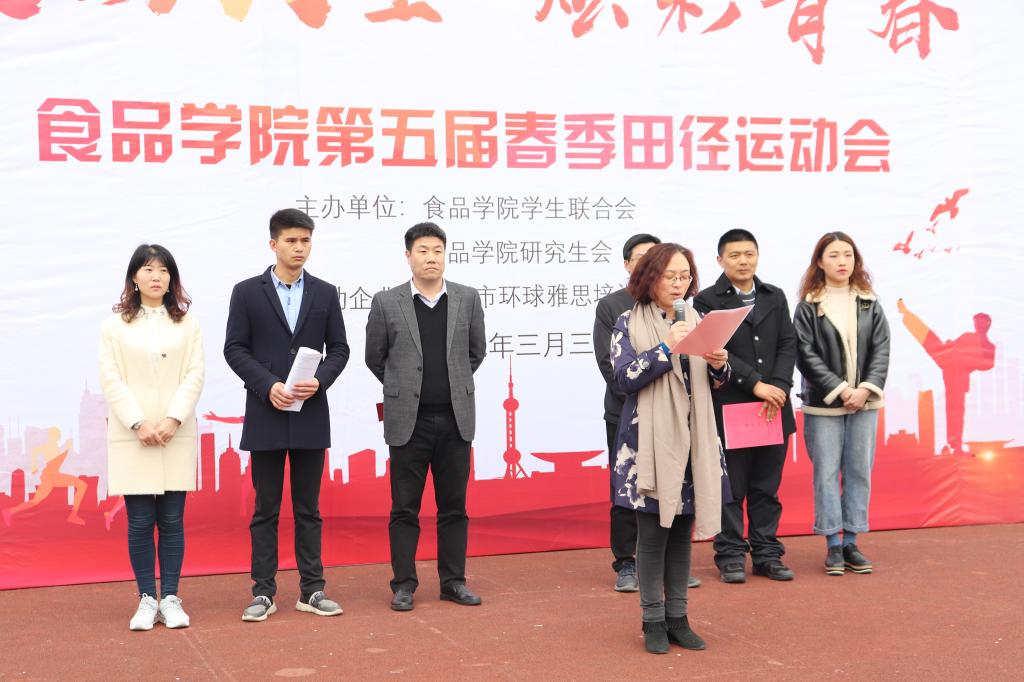 2019年3月31日,江南大学食品学院第五届春季田径运动会在体育中心举行。食品学院党委书记向琪,党委副书记张文,副院长王周平,分团委书记王胤,各级辅导员和班主任代表出席了运动会开幕式。