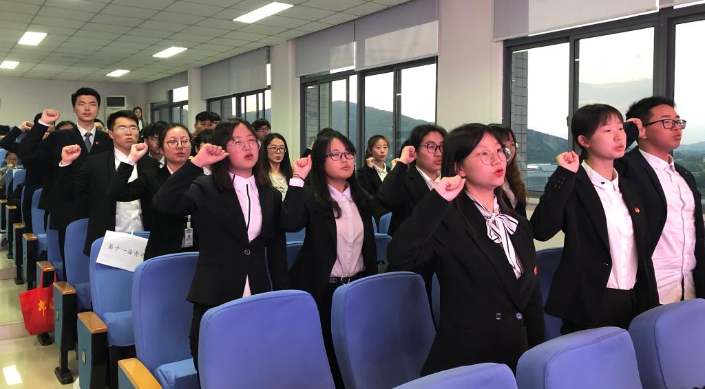 活动伊始,主持人首先宣布了第十届青马训练营优秀营员,肯定了他们在青马训练营期间脚踏实地、积极进取、力争上游的精神,为学院团员青年发挥了模范带头作用。随后,张文为优秀营员们颁发了荣誉证书,赠书,为第十一届青马训练营营员代表吕和霖授旗。第十一届营员全体起立,举起右臂,集体宣誓,现场迸发着青年的激情与活力。